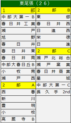 東尾張2部B 名古屋1部A 名古屋1部B 名古屋2部A