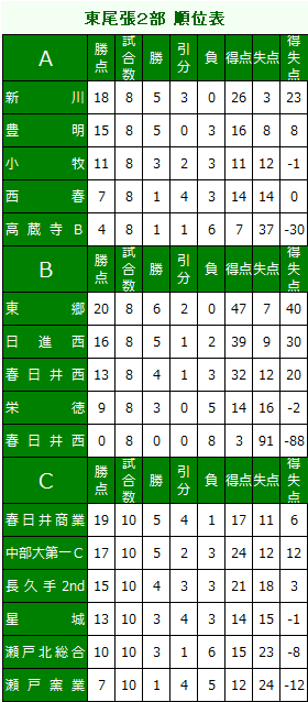 2018 東尾張2部リーグ表