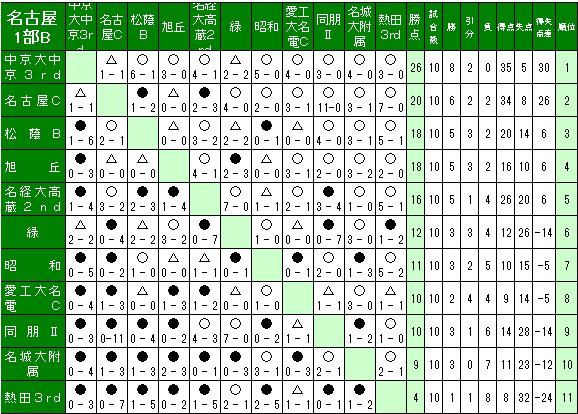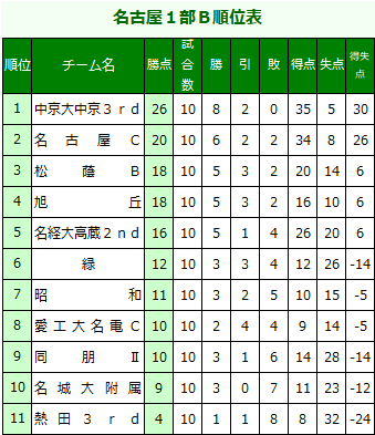 2018 名古屋1部Bリーグ表