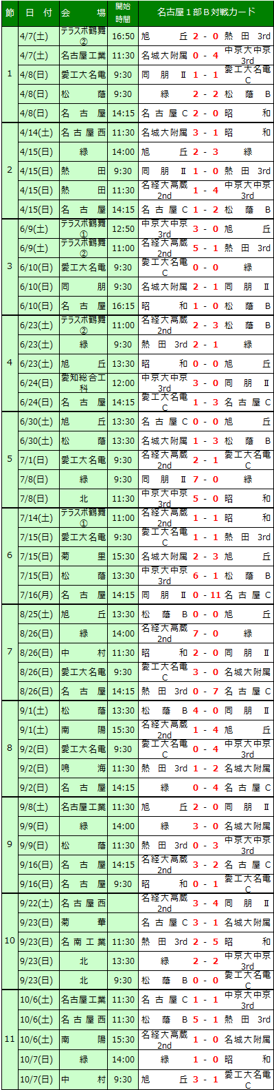2018 名古屋1部B日程表