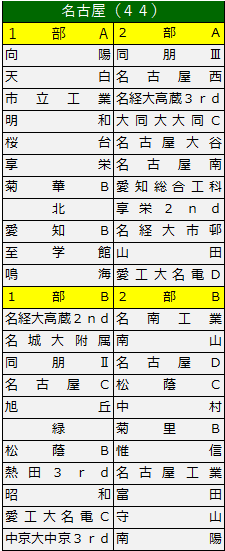 東尾張2部B 名古屋1部A 名古屋1部B 名古屋2部A