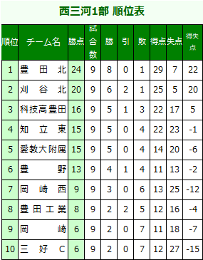 愛知県高校サッカー地区リーグの結果を送信ください。