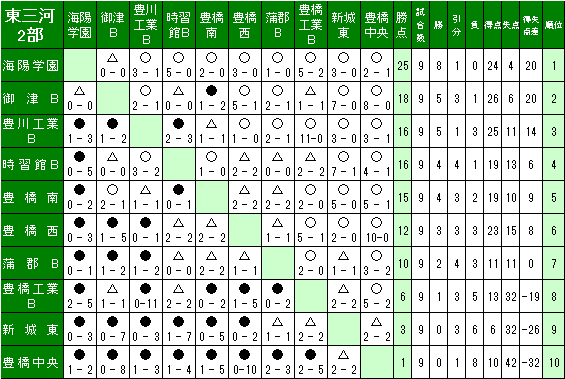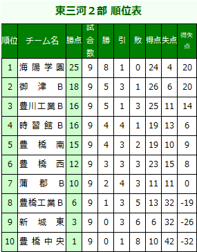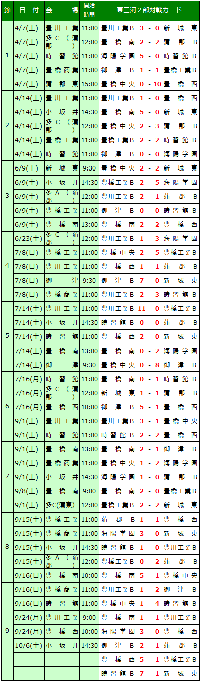 愛知県高校サッカー地区リーグの結果を送信ください。