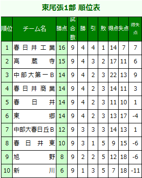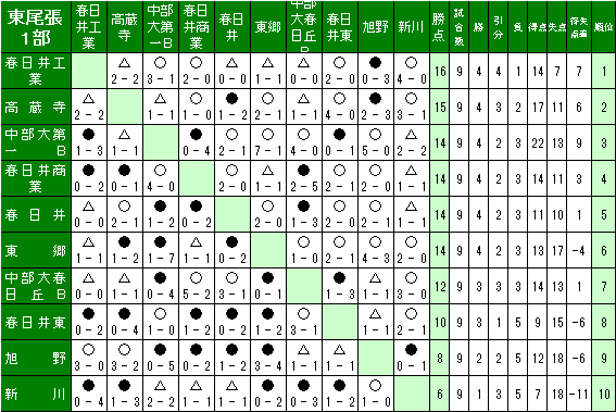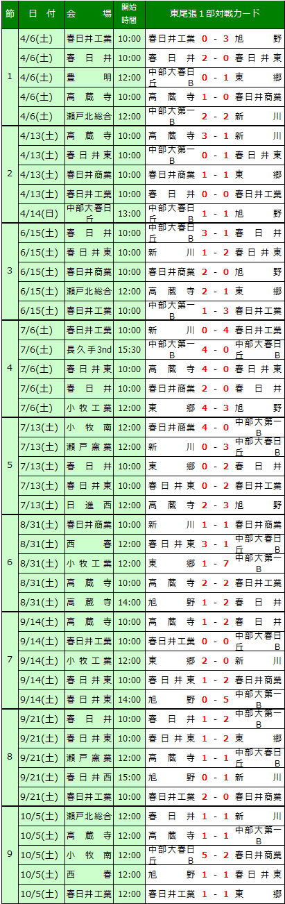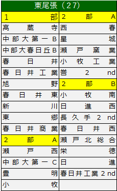 東尾張2部B 名古屋1部A 名古屋1部B 名古屋2部A