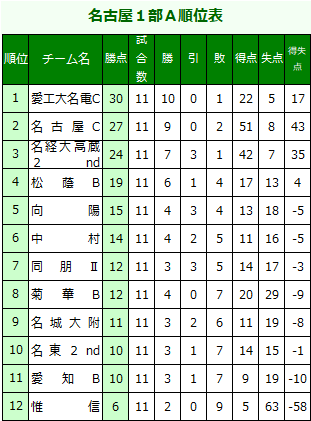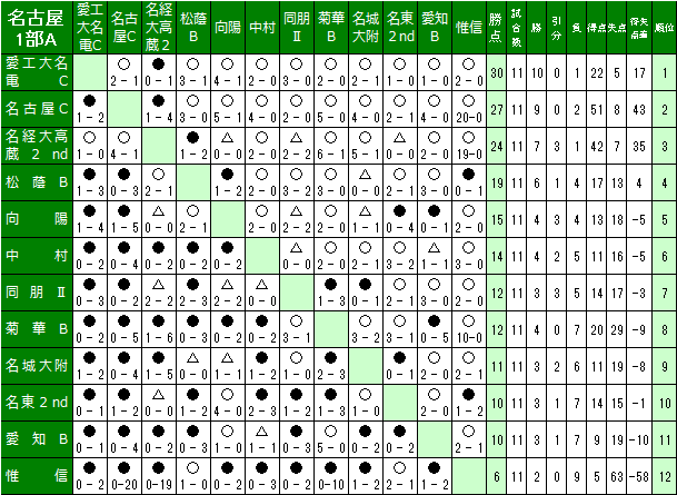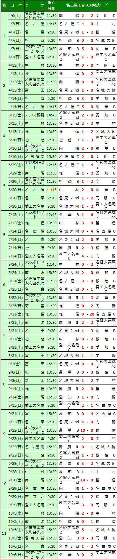 愛知県高校サッカー名古屋地区リーグの結果を送信ください。