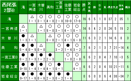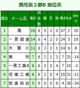 2020 西尾張2部Bリーグ表