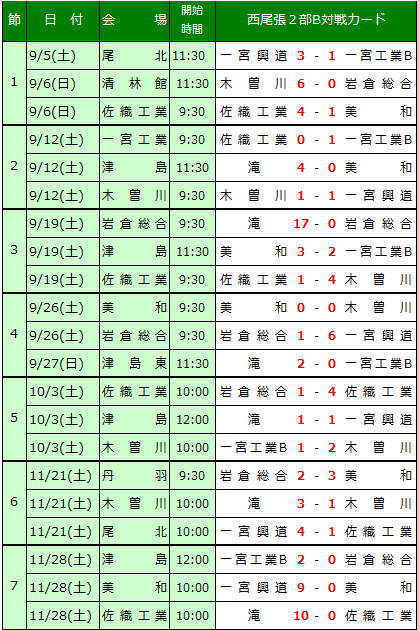 名古屋2部B 知多 西三河1部 西三河2部