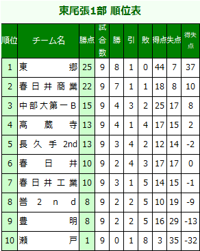 2020 東尾張1部リーグ表