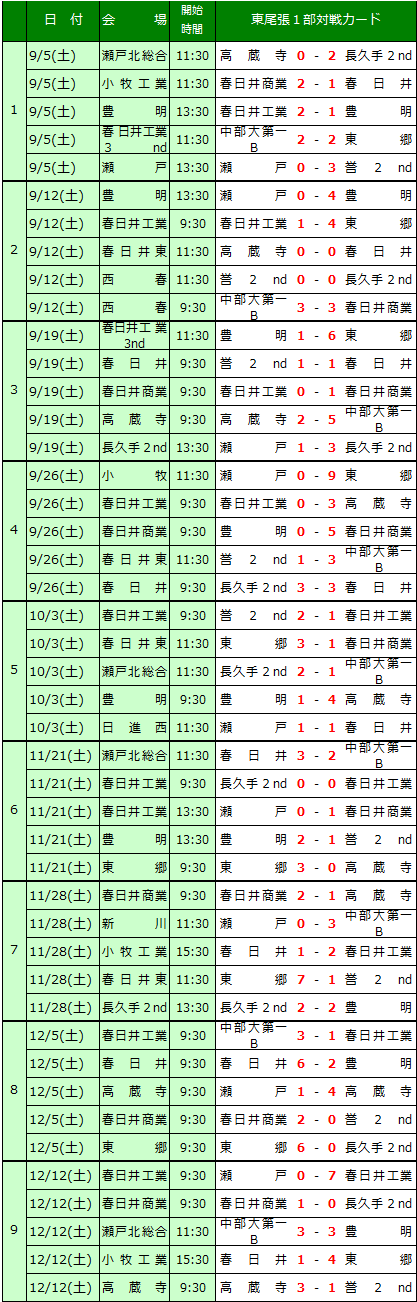 2020 東尾張1部日程表