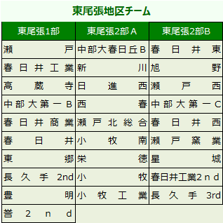 西尾張2部A 西尾張2部B 東尾張1部 東尾張2部A