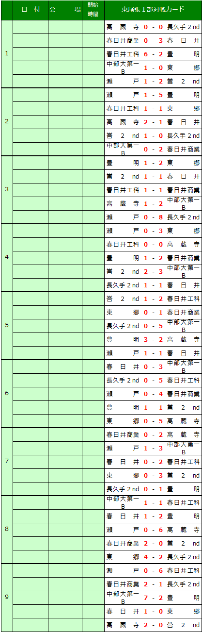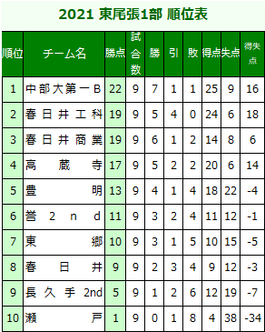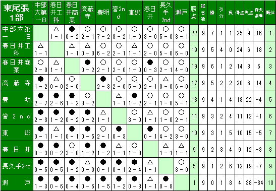 東尾張2部B 名古屋1部A 名古屋1部B 名古屋2部A