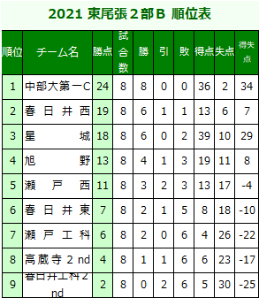 2021 東尾張2部Bリーグ表