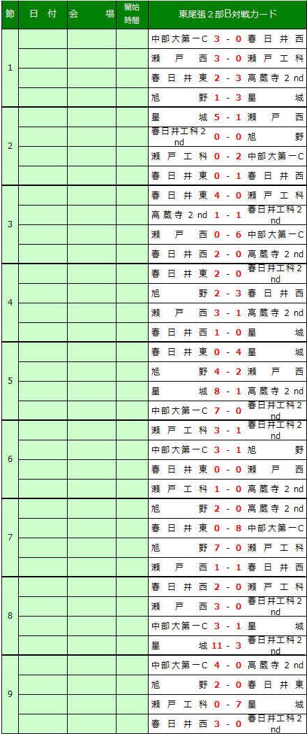 名古屋2部B 知多 西三河1部 西三河2部