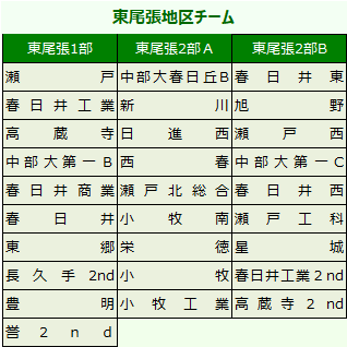 西尾張2部A 西尾張2部B 東尾張1部 東尾張2部A