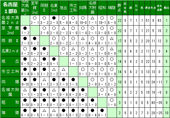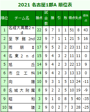 2021 名古屋1部Bリーグ表