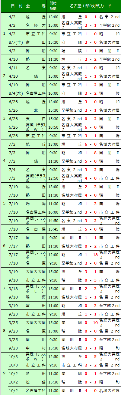 2021 名古屋1部B日程表