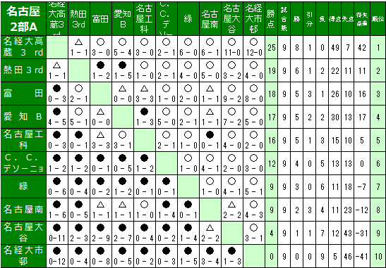 東尾張2部B 名古屋1部A 名古屋1部B 名古屋2部A