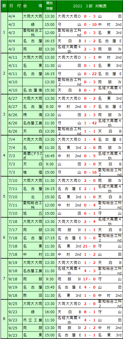2021 名古屋3部日程表
