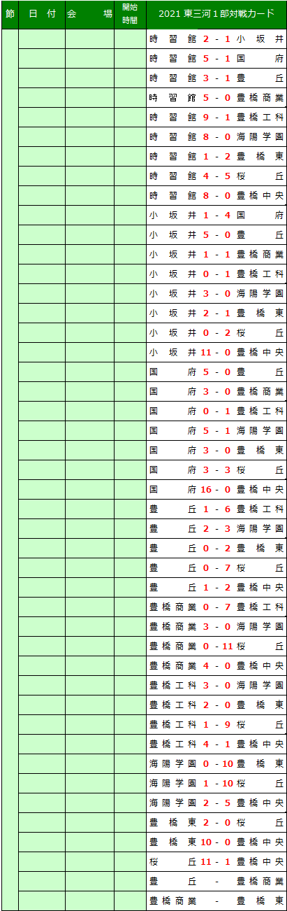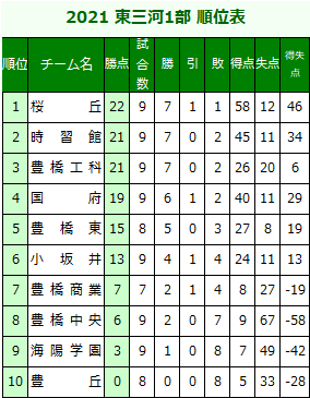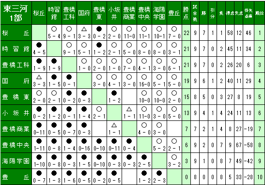 愛知県高校サッカー東三河地区リーグの結果を送信ください。