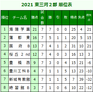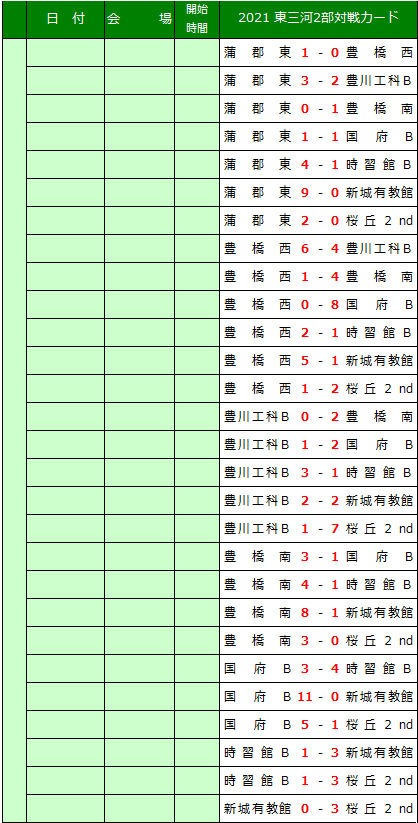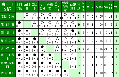 愛知県高校サッカー東三河地区リーグの結果を送信ください。