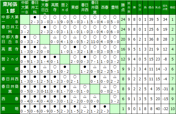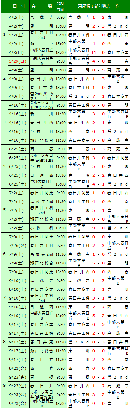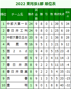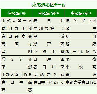 東尾張2部B 名古屋1部 名古屋2部A 名古屋2部B