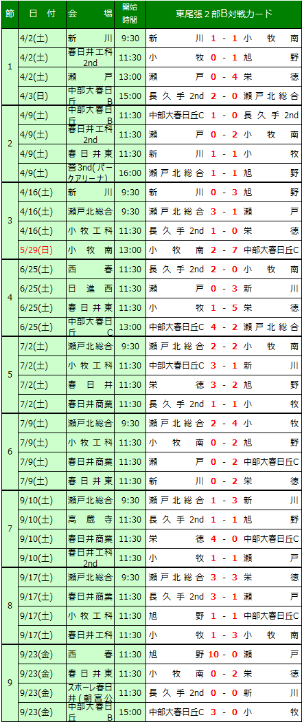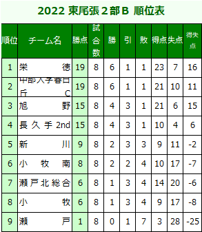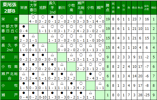 東尾張2部B 名古屋1部 名古屋2部A 名古屋2部B