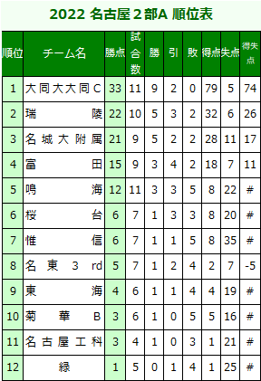 東尾張2部B 名古屋1部 名古屋2部A 名古屋2部B