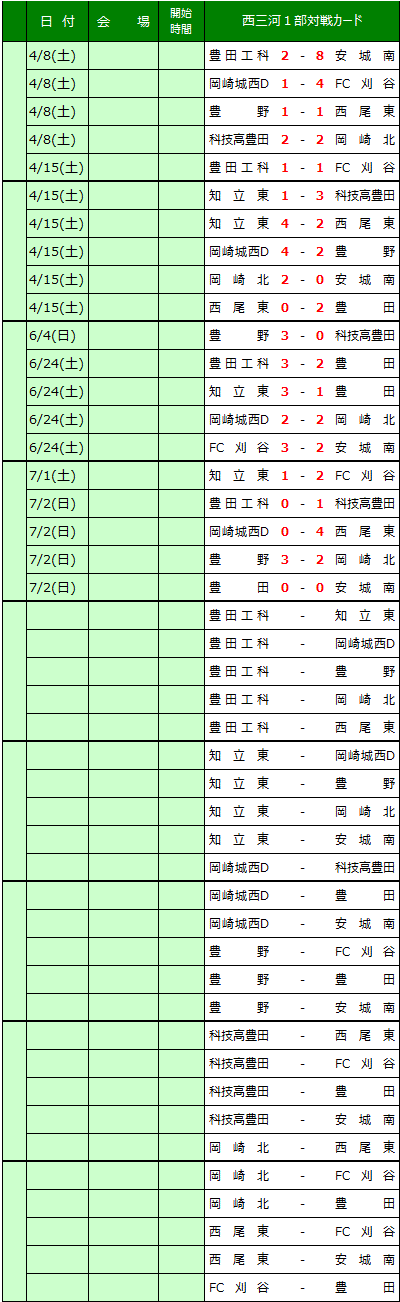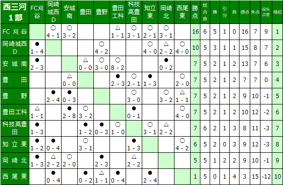 愛知県高校サッカー西三河地区リーグの結果を送信ください。
