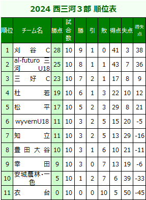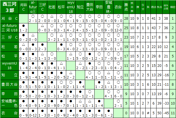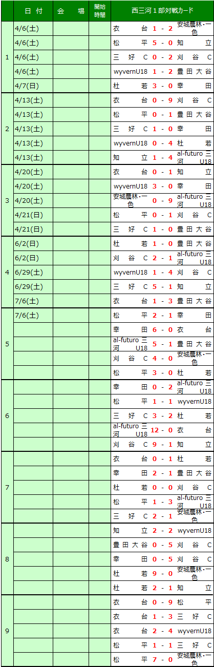 愛知県高校サッカー西三河地区リーグの結果を送信ください。