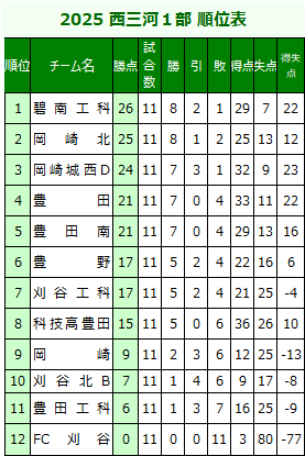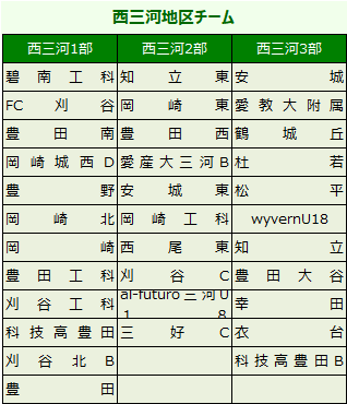 愛知県高校サッカー西三河地区リーグの結果を送信ください。