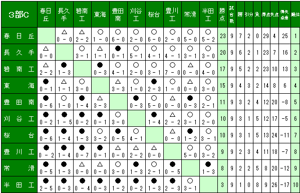 3部リーグC 2013 日程表・試合結果 (会場・時間は変更の場合があります) (最下段より、試合結果情報をお寄せください。直ちにリーグ表に反映いたします。)