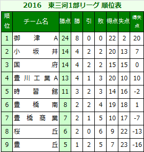 | (4)順位決定は、勝ち3点、引き分け1点、負け0点の勝ち点制とする。但し、勝ち点が同じ場合は、得失点差、総得点、当該チーム間の勝ち点、当該チーム間の得失点差、当該チーム間の総得点、抽選の順で決定する。 |