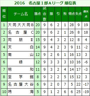 | (4)順位決定は、勝ち3点、引き分け1点、負け0点の勝ち点制とする。但し、勝ち点が同じ場合は、得失点差、総得点、当該チーム間の勝ち点、当該チーム間の得失点差、当該チーム間の総得点、抽選の順で決定する。 |