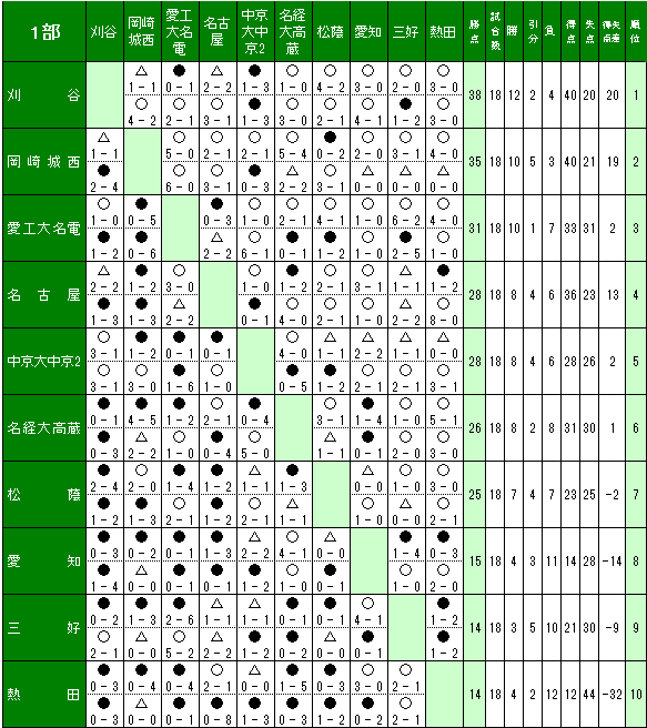 | ①1位は東海プリンスリーグへの参入戦に出場する権利を得る。 |