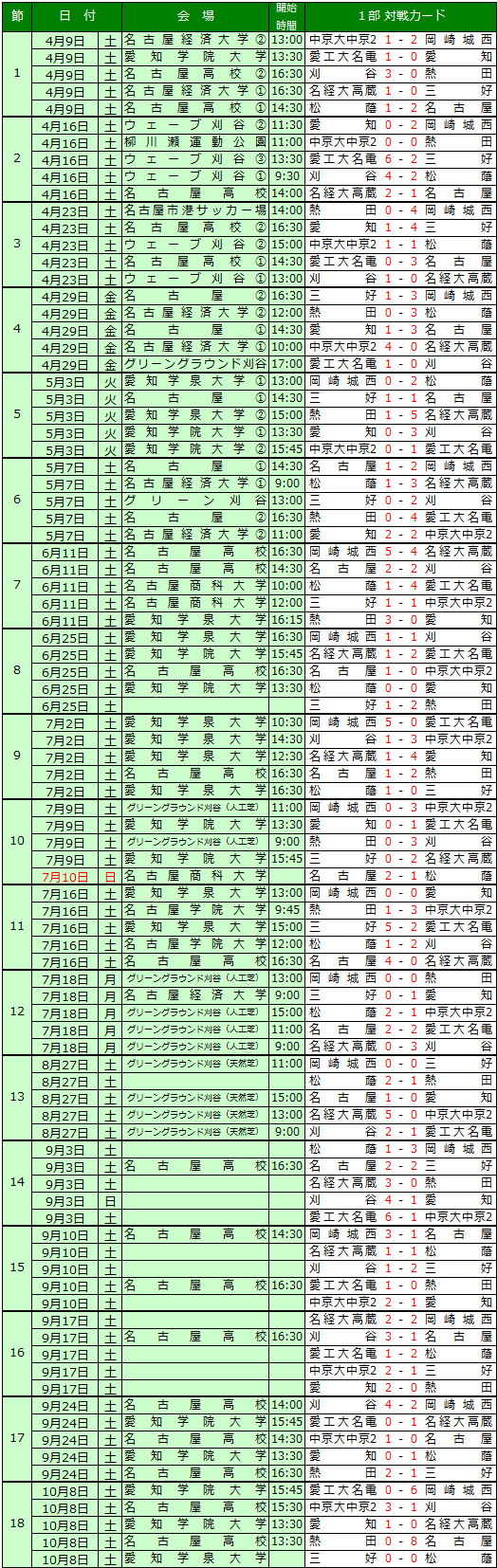 | 2、名称U-18愛知県サッカーリーグ1部 |