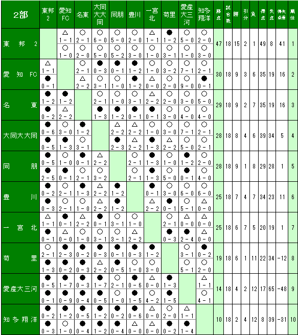 | ①上位2チームは、次年度県1部リーグ昇格とする。 |