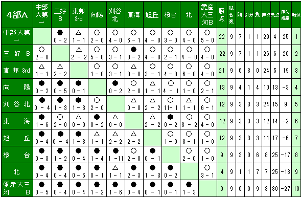 4部Aリーグ表