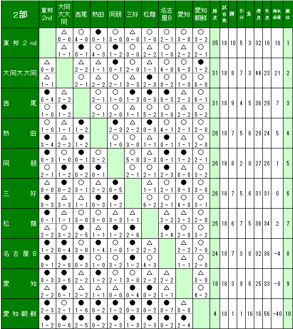 (1)上位2チームは、次年度県1部リーグに昇格する。 |