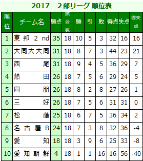 高円宮杯U-18サッカーリーグ2017 愛知県2部リーグ |