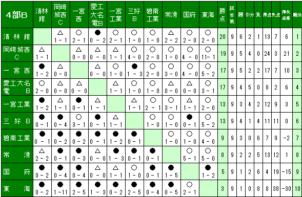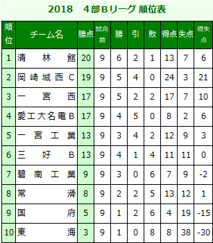 4部Bリーグ表