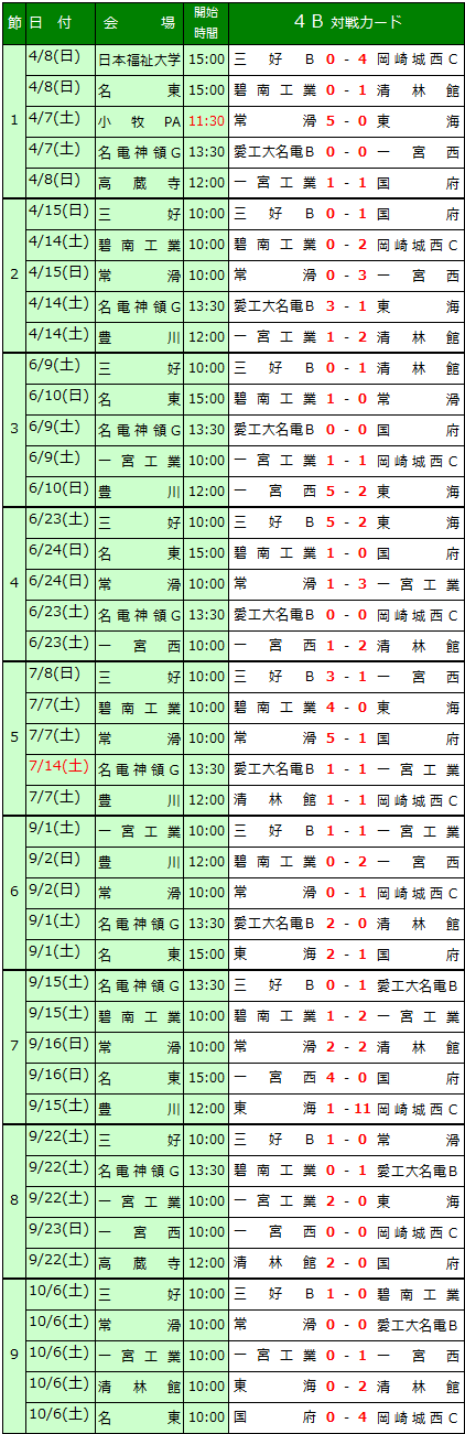 名古屋2部B 知多 西三河1部 西三河2部