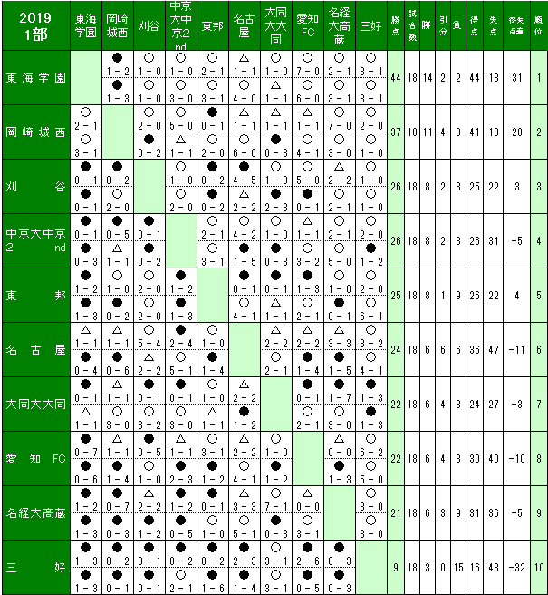 愛知県高校サッカーリーグの結果を送信ください。