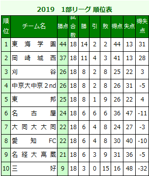 2019愛知県リーグ出場チーム