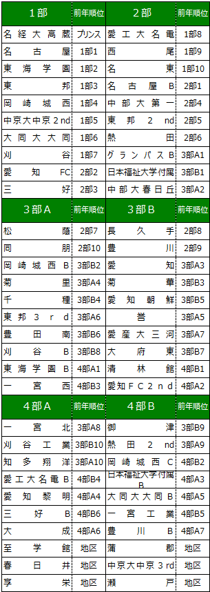 東尾張2部B 名古屋1部A 名古屋1部B 名古屋2部A