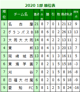 | 14 入れ替え (1)1位のチームは、プリンスリーグ東海参入戦に出場する権利を得る。 |