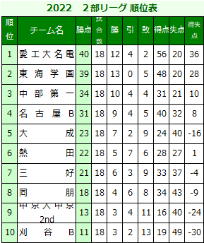 2部リーグ表