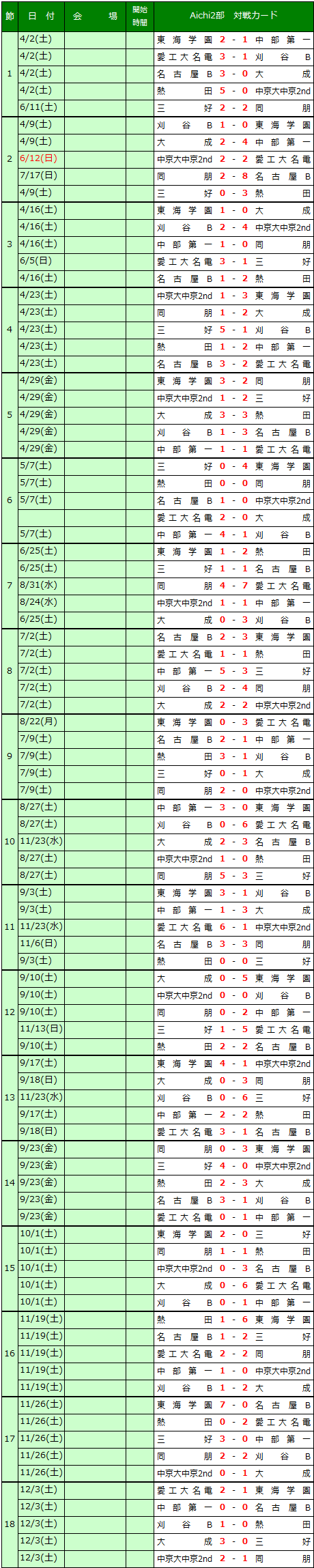 愛知県高校サッカーリーグの結果を送信ください。