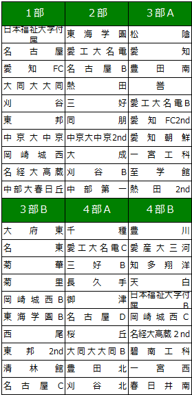 2022愛知県リーグ出場チーム