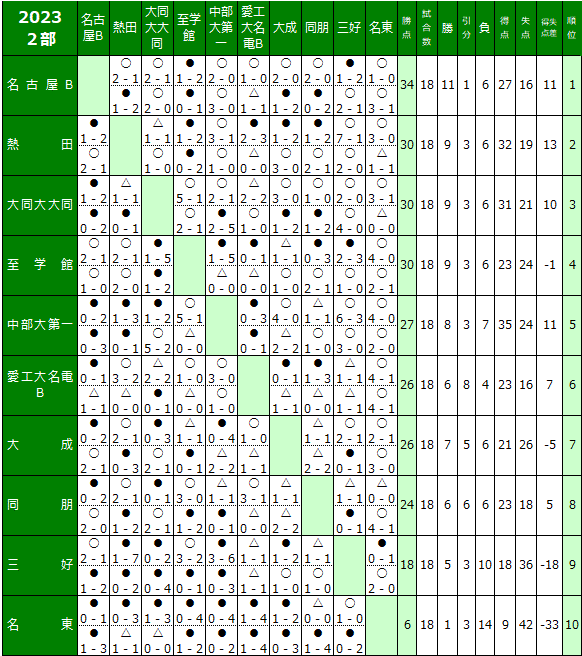 2023 2部 日程表・試合結果