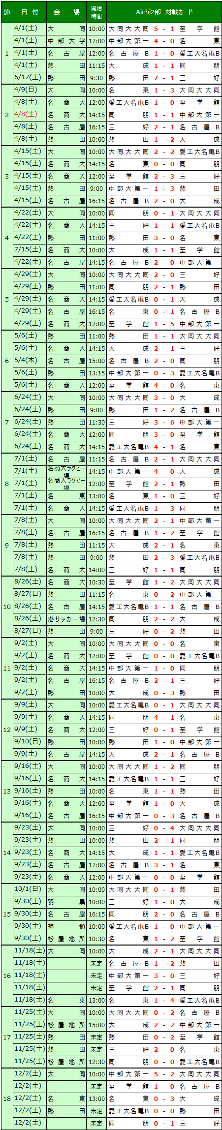 | 高円宮杯U-18サッカーリーグ 愛知県リーグ | |||||||||||||||||||||||||||||||||||||||||||||||||||||